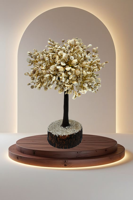 A sacred small crystal tree made with Gomti Chakras that invites prosperity, protection, and good fortune into your space.